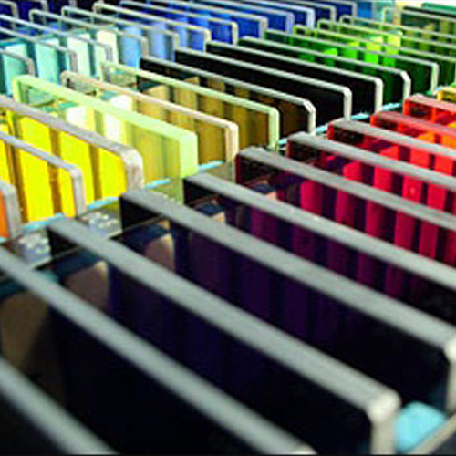 色ガラスフィルターは可視域で様々な吸収スペクトルを持ち、ガラスのタイプによってガラスの色が変わります。色ガラスフィルターは様々な用途に使用可能な安価なフィルターです。色ガラスフィルターはレーザー保護めがねや計測、環境保護等で使用されています。
