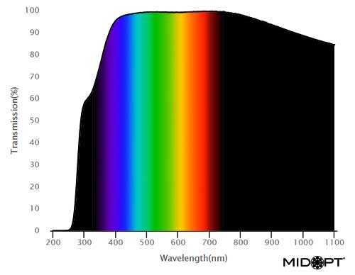 LP285は低散乱・低吸収、優れた強度を両立し、パイレックスと同等の機械的特性、高強度、太陽光的特性を持つフィルターで、保護ウィンドウとして、385〜1100nmのイメージングに最適です。