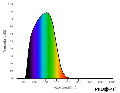 BP500: グリーン-ブルーバンドパス: 440-555nm透過