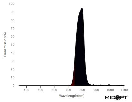 LEDやLDを使用した780-785nm照射において、狭帯域フィルターは周辺光が問題になる時に特にお勧めです。